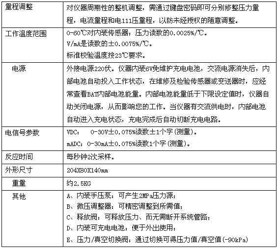 ZC-3000-4壓力校驗儀的技術(shù)參數(shù):