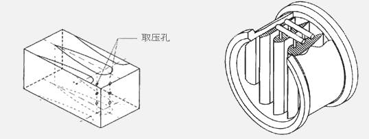 機(jī)翼測風(fēng)裝置是采用一種機(jī)翼形節(jié)流件的節(jié)流式流量傳感器。結(jié)構(gòu)原理圖如下: